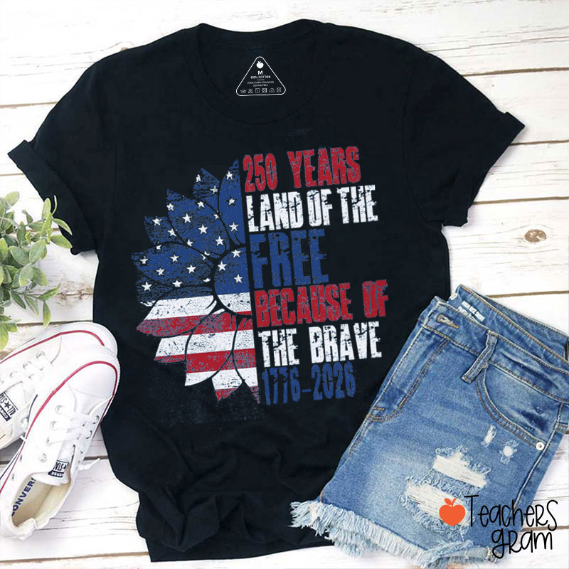 250 Years Land Of The Free Because Of The Brave Teacher T-Shirt
