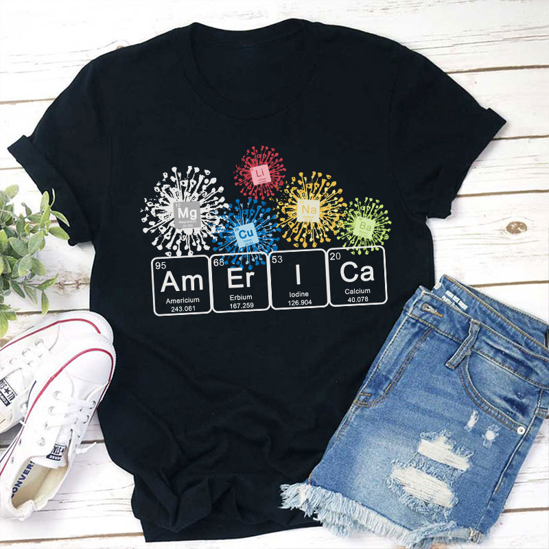 America Spelled With The Periodic Table of the Elements Teacher T-Shirt