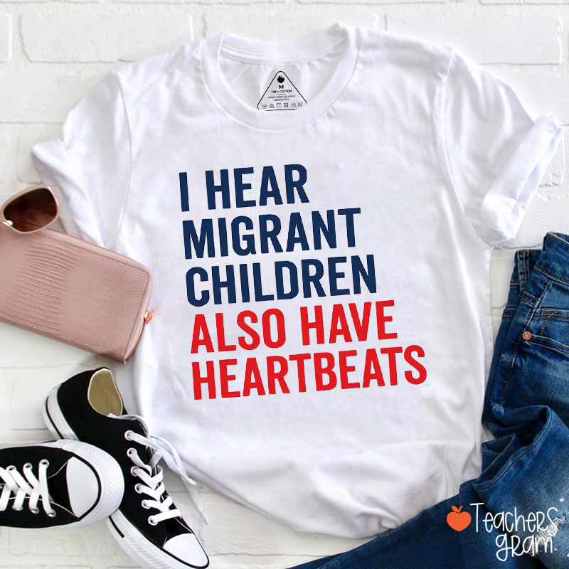 I Hear Migrant Children Also Have Heartbeats Teacher T-Shirt