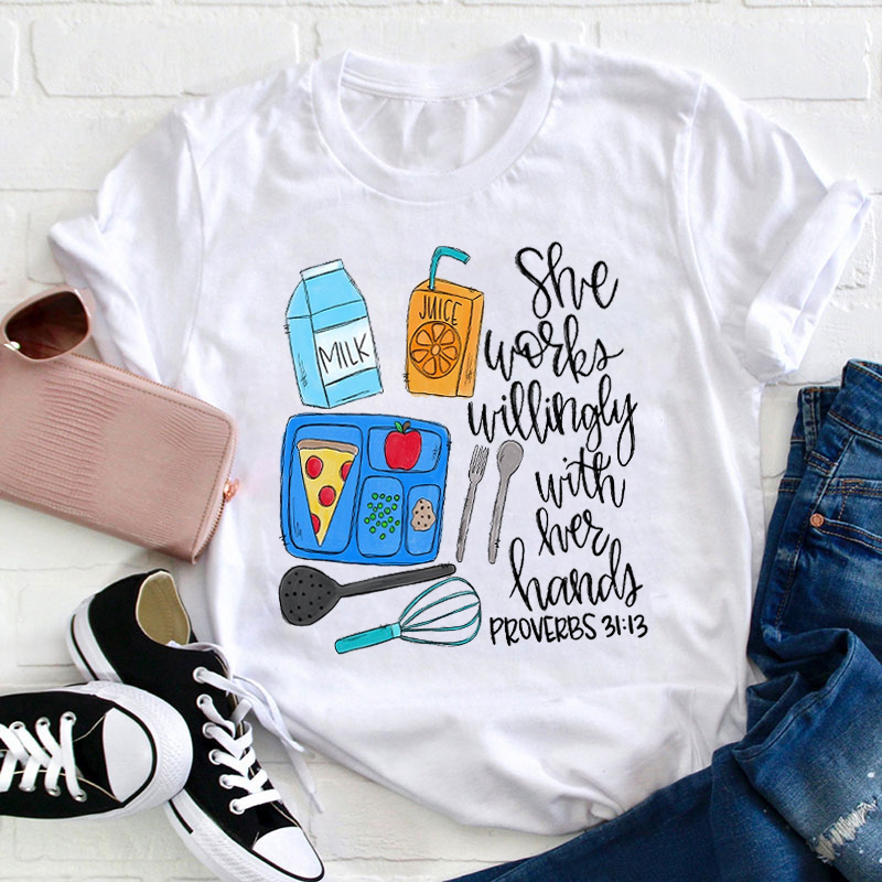 Lunch Lady She Works Willingly With Her Hands Teacher T-Shirt