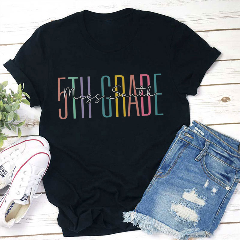 Personalized Name One Lucky Teacher Clover Rainbow Teacher T-Shirt