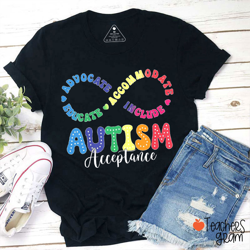 Advocate Accommodate Educate Include Autism Acceptance Teacher T-Shirt