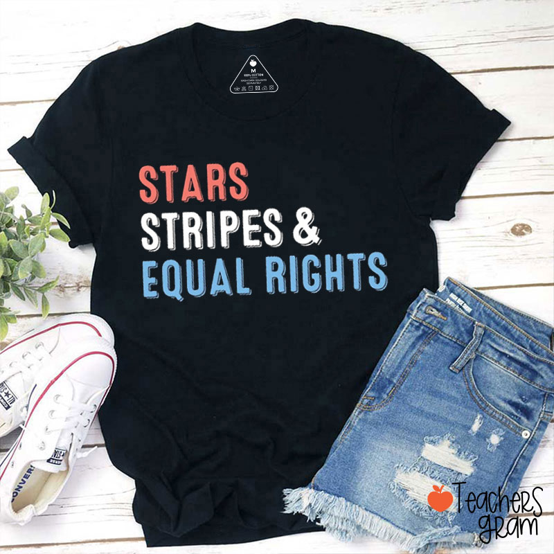 Stars Stripes And Equal Rights 4th Of July Teacher T-Shirt