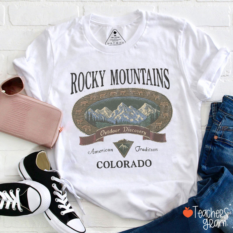 Rocky Mountains Outdoor Discovery American Tradition Colorado Teacher T-Shirt