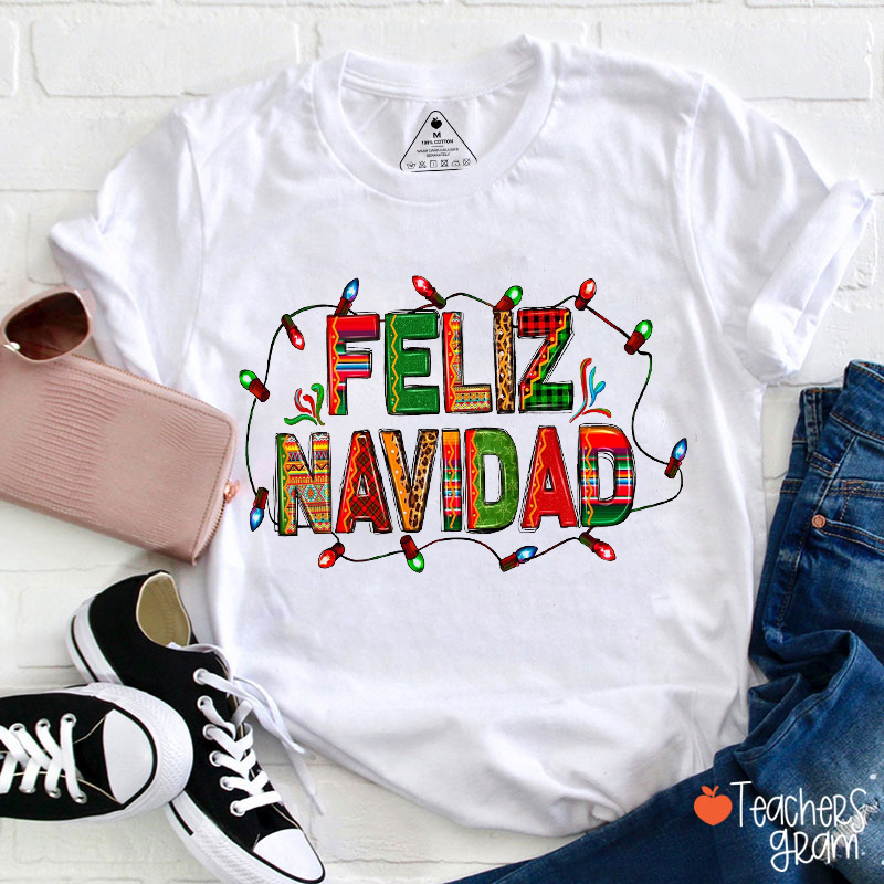 Feliz Navidad Light Christmas Spanish Teacher T-Shirt