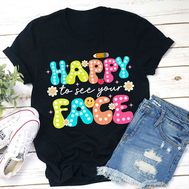 Happy To See Your Face Neon Print Teacher T-Shirt