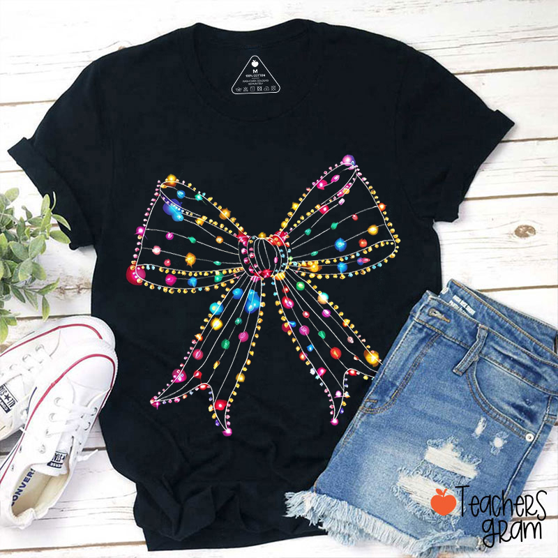 Christmas Lights Bow Teacher T-Shirt