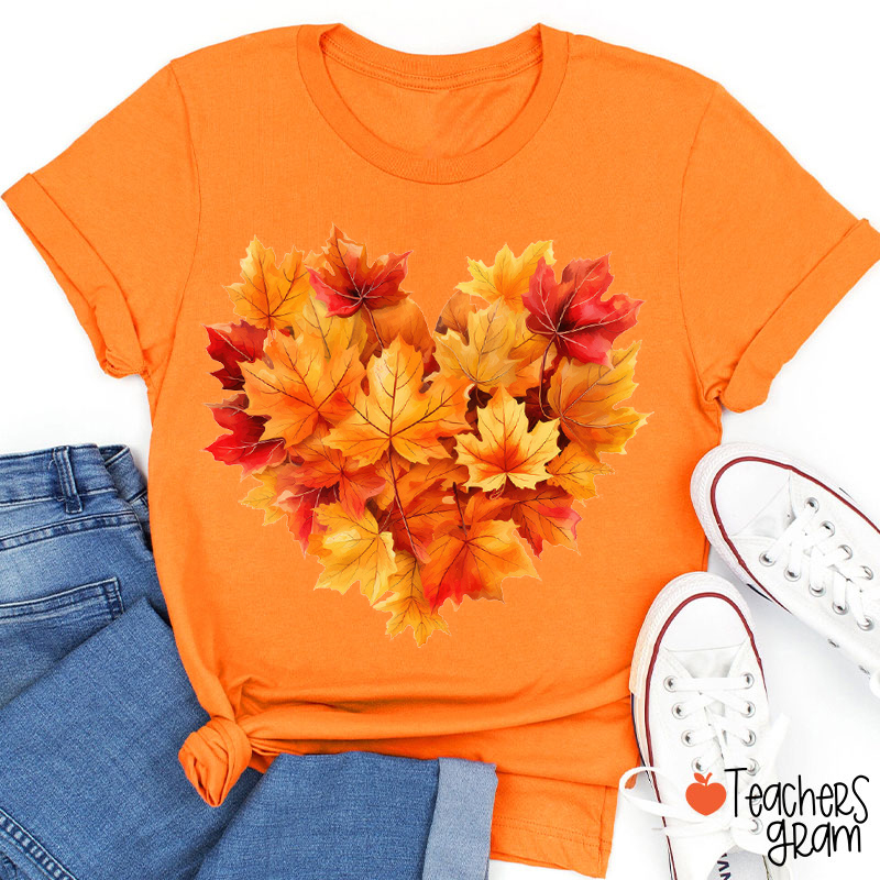 Heart Shaped Maple Leaf Fall Teacher T-Shirt