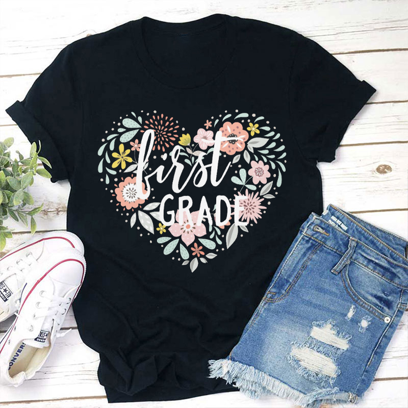 Personalized Floral Heart First Day Teacher T-Shirt