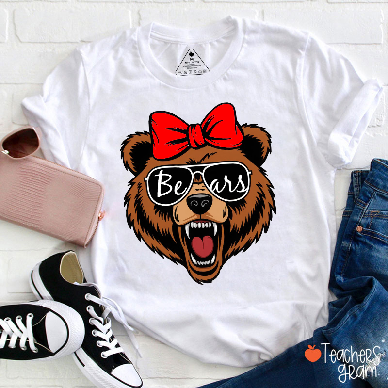 Personalized Mascot Bow Glasses School Spirit Teacher T-Shirt