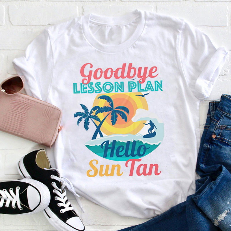 Goodbye Lesson Hello Sun Tan Teacher T-Shirt