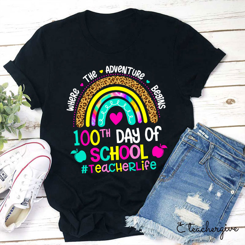 100 Days Of School Where The Adventure Begins Teacher T-Shirt