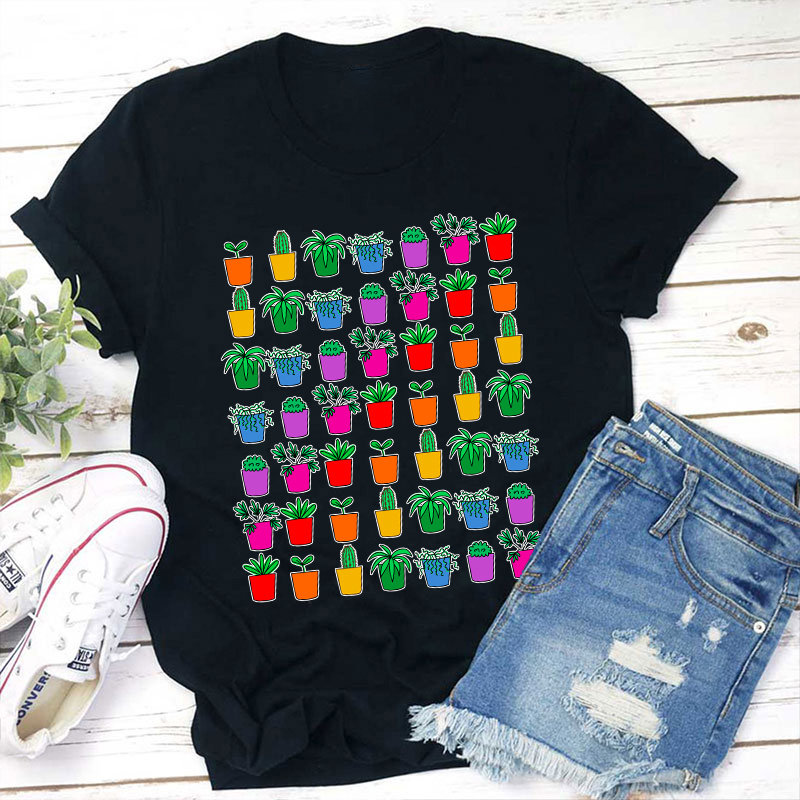 Colorful Potted Plant Teacher T-Shirt