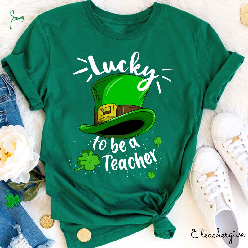 Lucky To Be A Teacher Leprechaun Hat Teacher T-Shirt