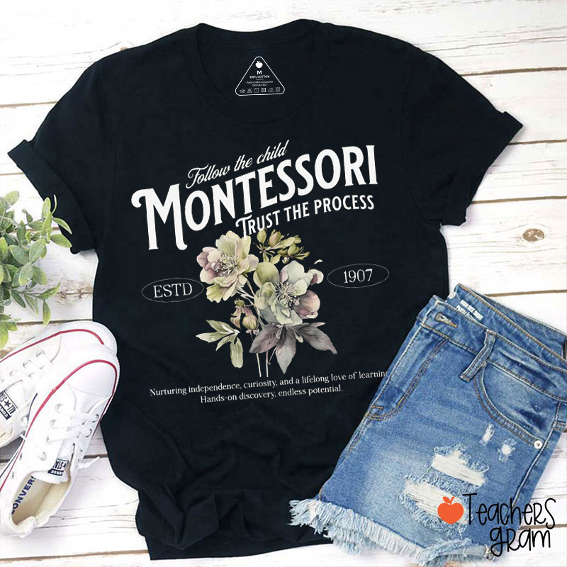 Follow The Child Montessori Trust The Process Teacher T-Shirt