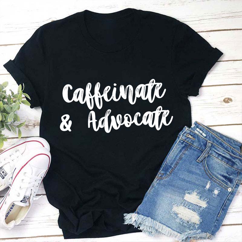 Caffeinate And Advovate Teacher T-Shirt