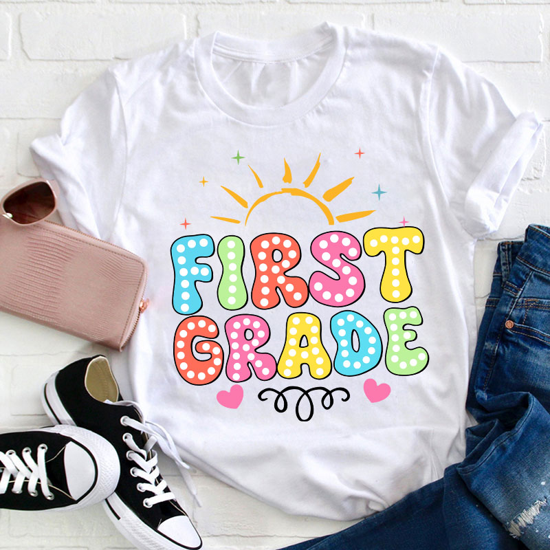 Personalized Neon Light And Sunshine Hello My Grade Teacher T-Shirt