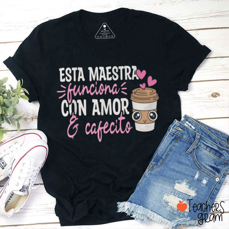 Esta Maestra Funciona Con Amor Y Cafecito Spanish Teacher T-Shirt