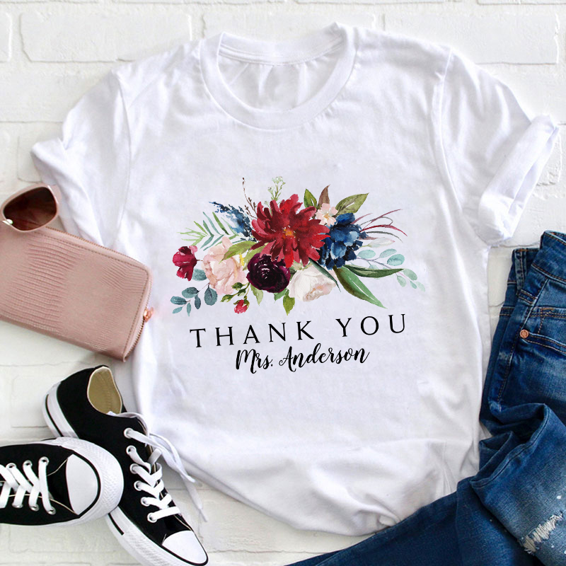 Personalized Floral Bouquet Thank You Teacher T-Shirt