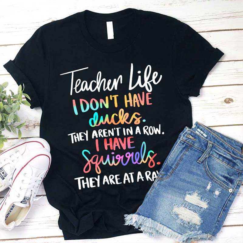 I Don't Have Ducks They Aren't In A Row I Have Squirrels They Are At A Rave Teacher T-Shirt