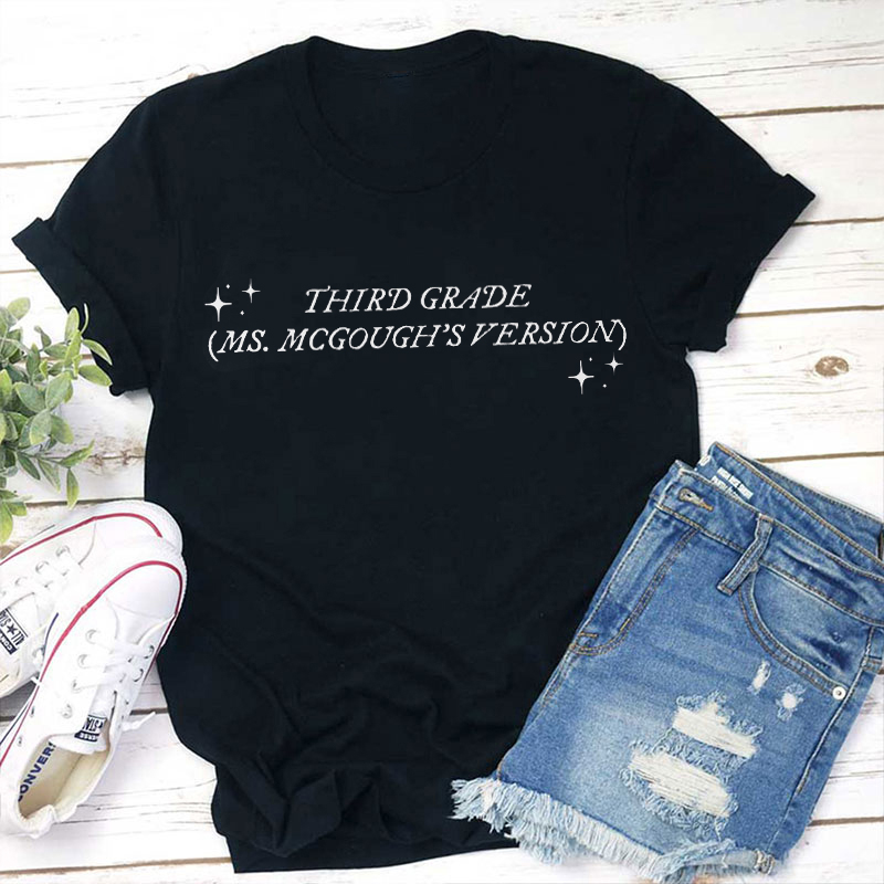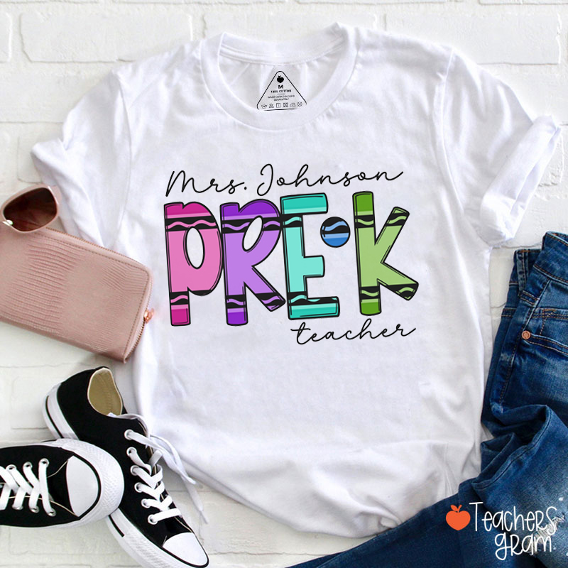 Personalized Name And Grade Crayon Font Teacher T-Shirt