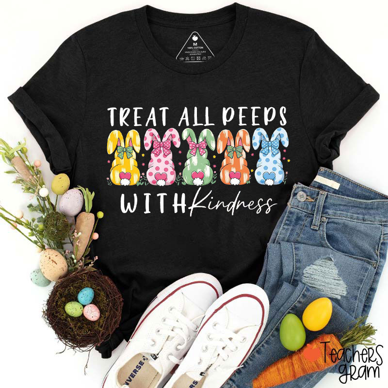 Treat All My Peeps With Kindness Cute Bunnies Teacher T-Shirt