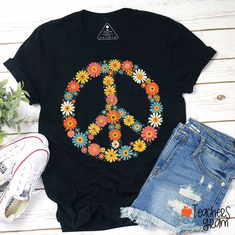 Floral Peace Teacher T-Shirt