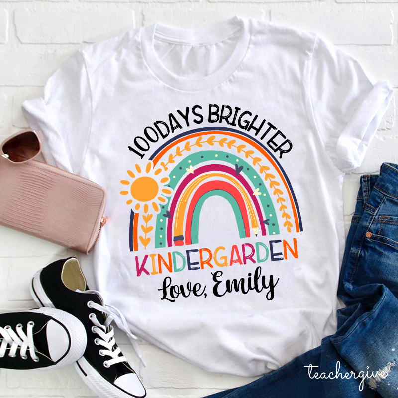 Personalized 100 Days Brighter Teacher T-Shirt