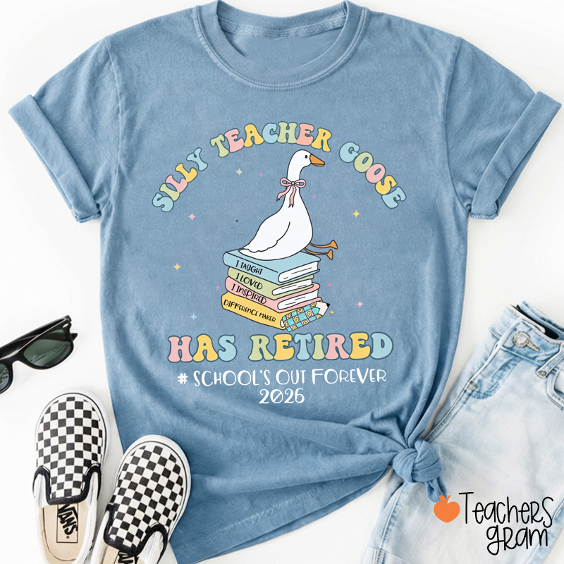 Personalized Silly Teacher Goose Has Retired School's Out Forever Teacher T-Shirt