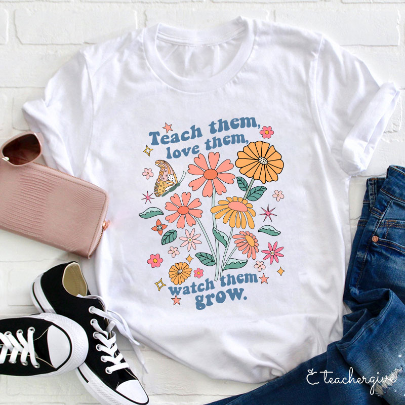 Teach Them Love Them Watch Them Grow Flower Teacher T-Shirt