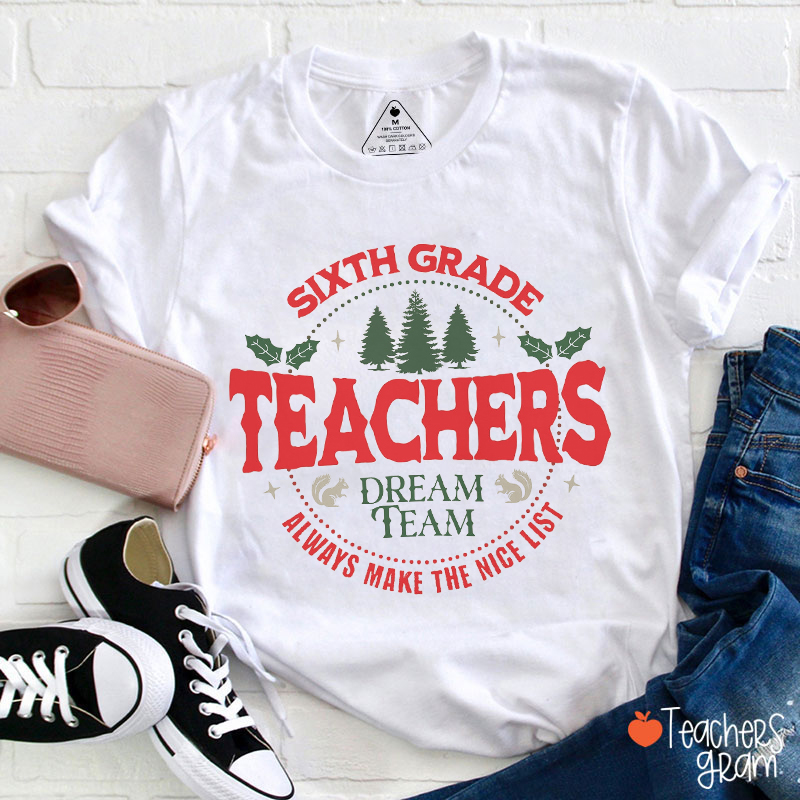 Personalized Grade Dream Team Christmas Teacher T-Shirt