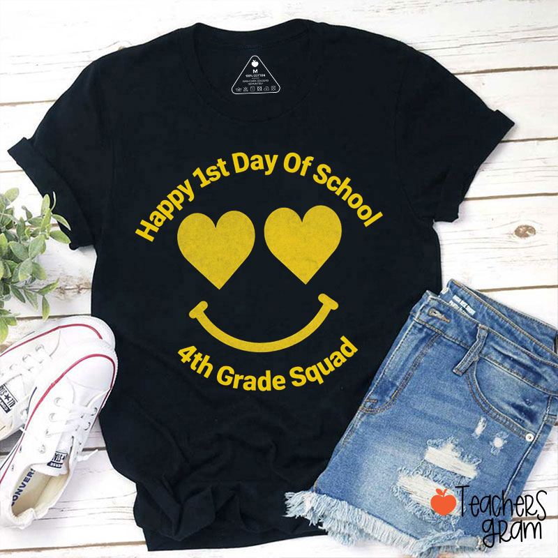 Personalized Grade Love Smiley Face Happy First Day Of School Teacher T-Shirt
