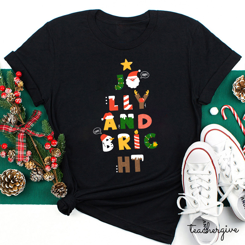 Jolly And Bright Best Christmas Vibes Teacher T-Shirt