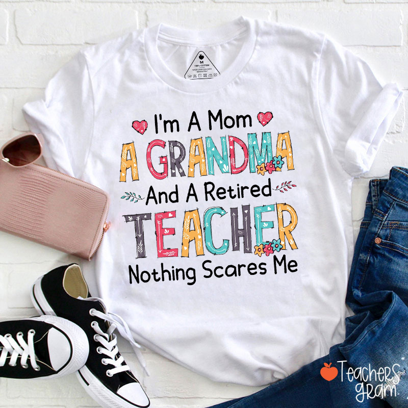I'm A Mom A Grandma And A Retired Teacher Nothing Scares Me Teacher T-Shirt