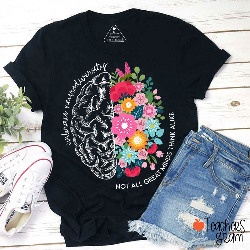 Embrace Neurodiversity Not All Great Minds Think Alike Teacher T-Shirt