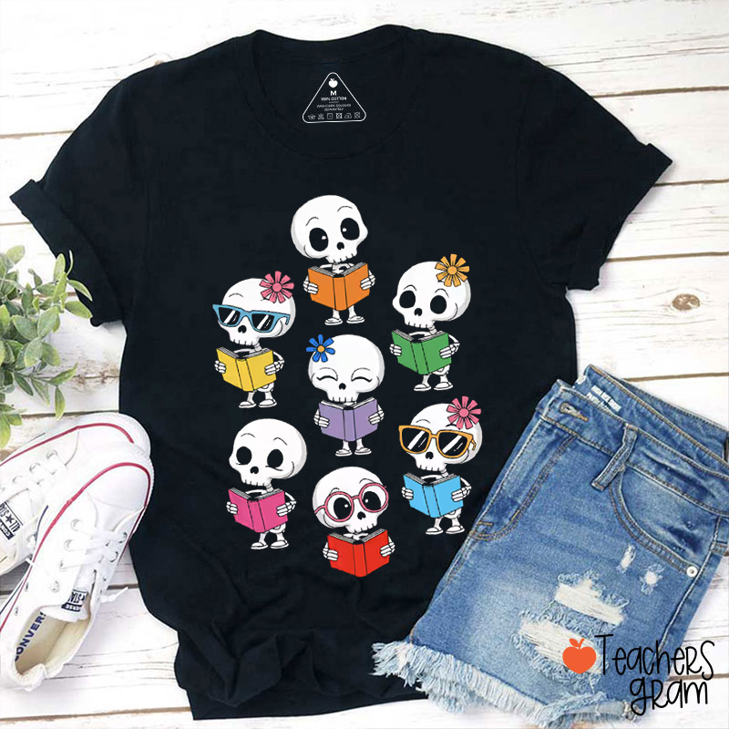 Skeletons Reading Books Teacher T-Shirt