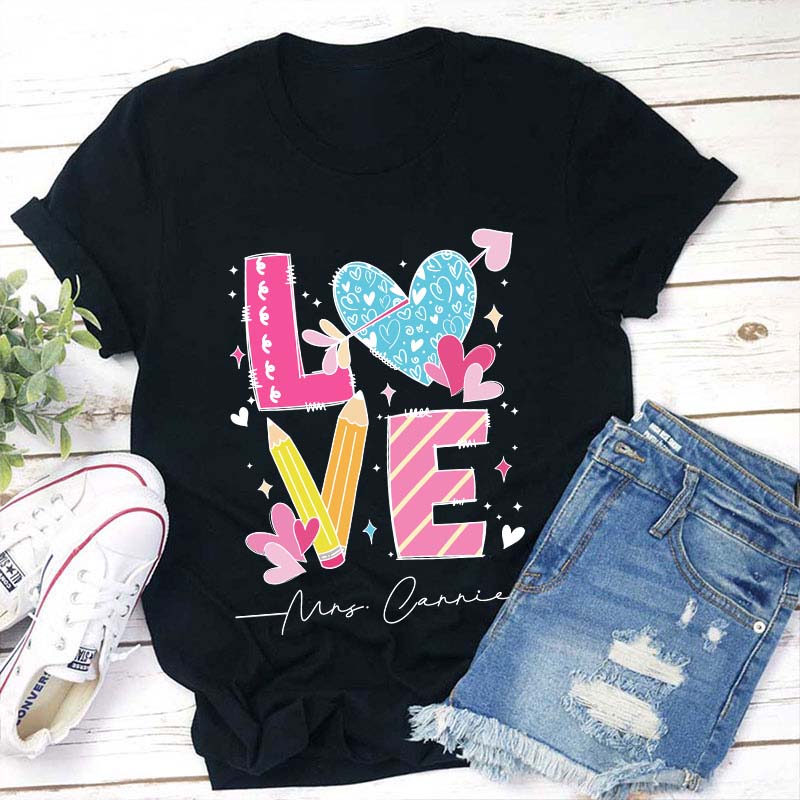 Personalized Love Teacher Name Heart Teacher T-Shirt
