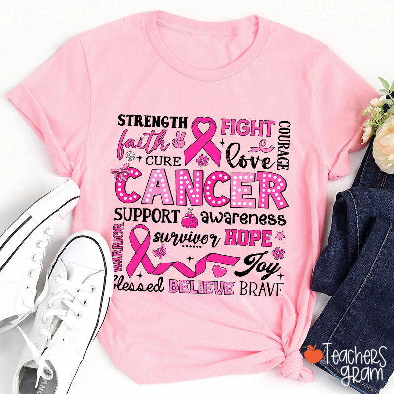 Strength Fight Love Cancer Breast Cancer Awareness Teacher T-Shirt