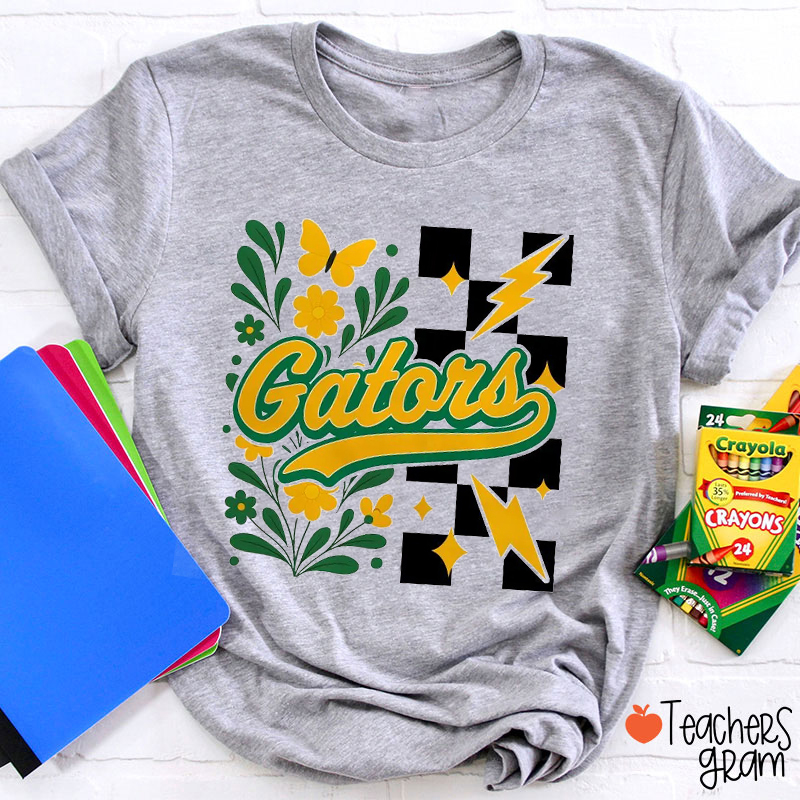 Personalized Mascot Checkered Flower School Spirit Teacher T-Shirt