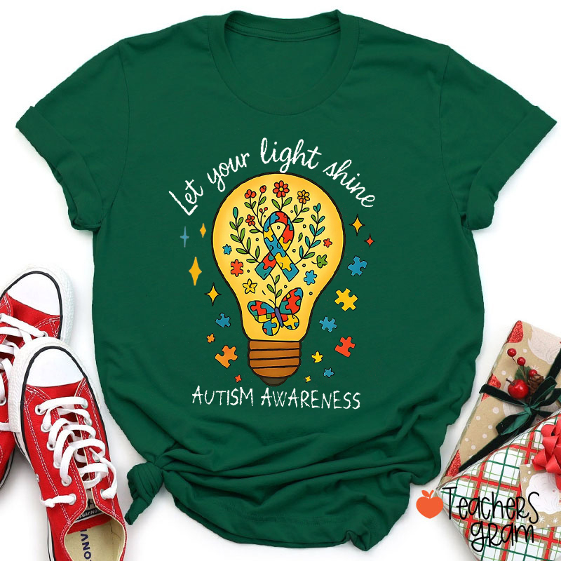 Let Your Light Shine Autism Awareness Teacher T-Shirt
