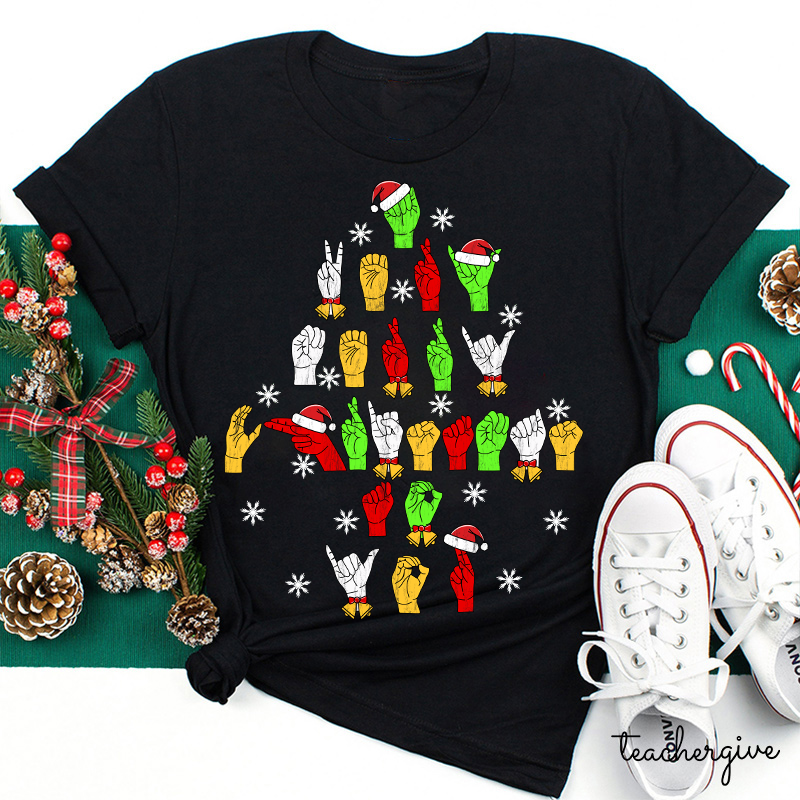 Hand Gesture Christmas Tree Teacher T-Shirt