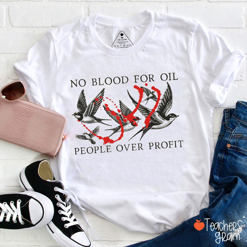 No Blood For Oil People Over Profit Teacher T-Shirt