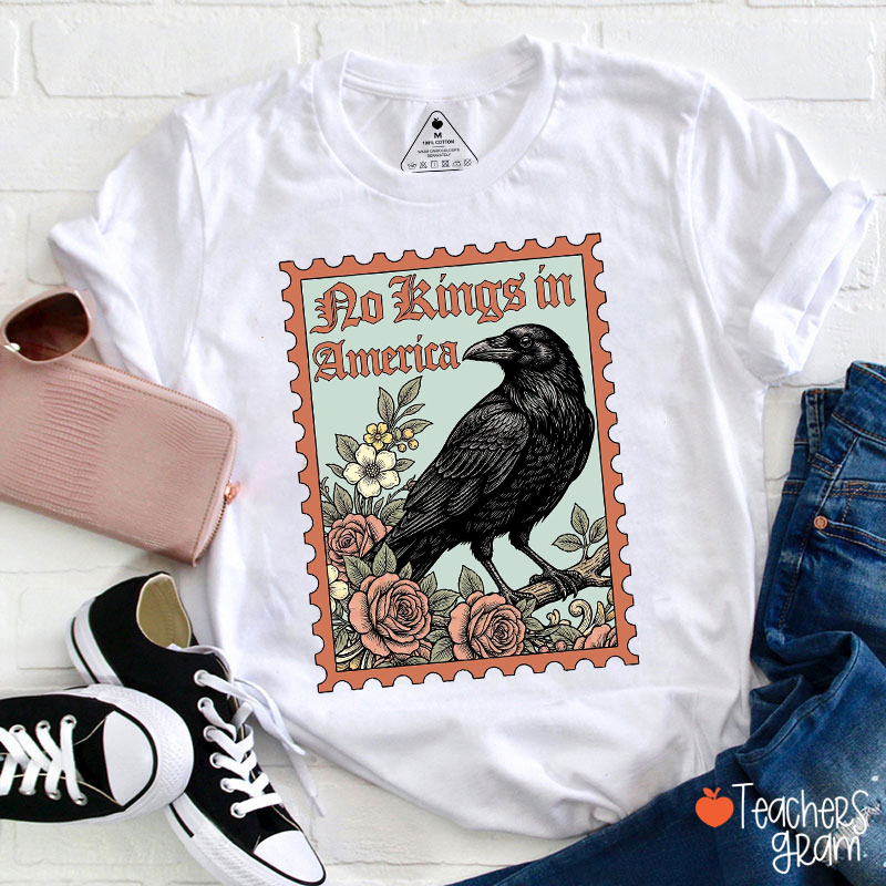 No Kings In America Stamp Raven Teacher T-Shirt