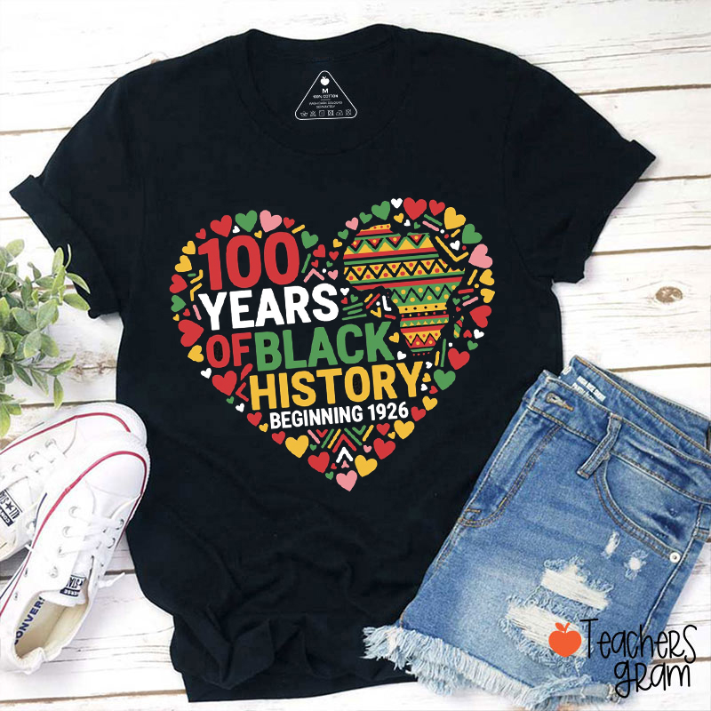 100 Years Of Black History Love Heart Teacher T-Shirt
