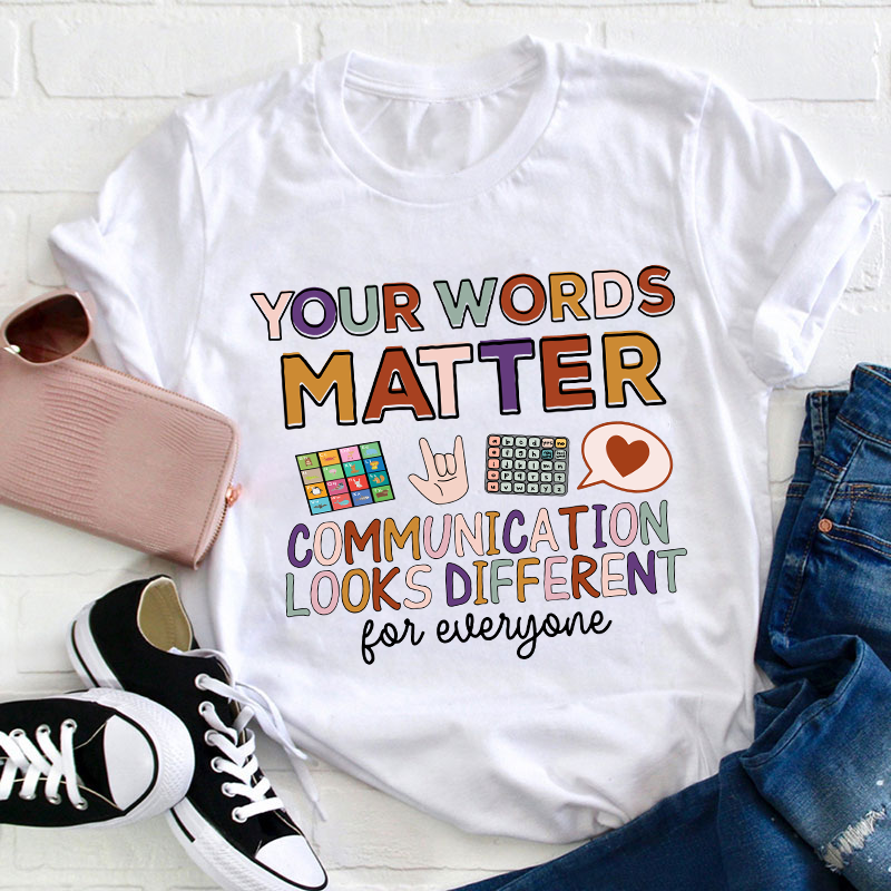 Your Words Matter Communication Looks Different For everyone Teacher T-Shirt