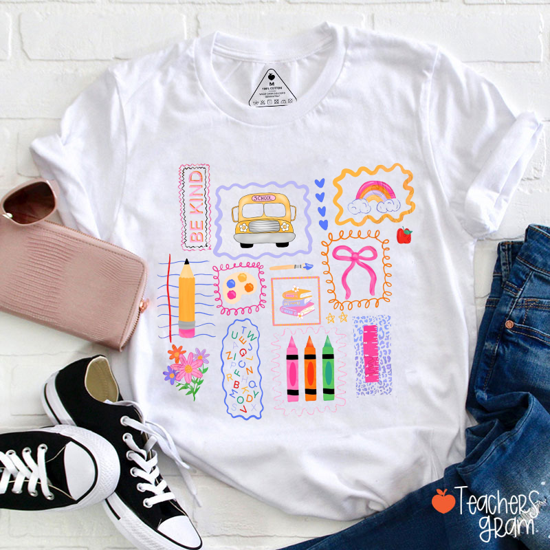 Be Kind School Bus Rainbow Bow Stationery Teacher T-Shirt