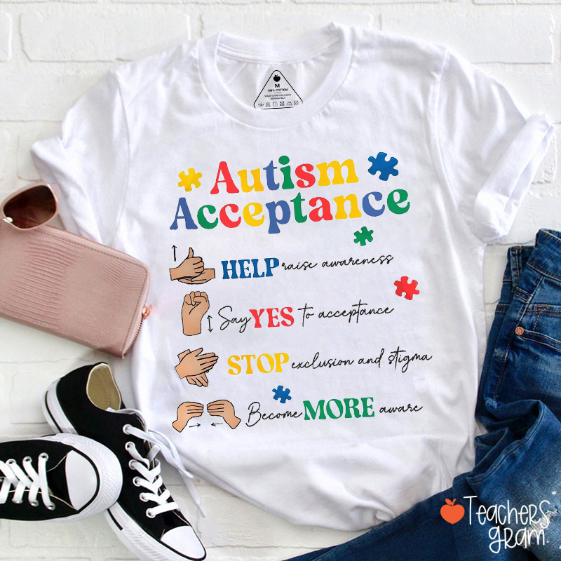 Autism Acceptance Sign Language Teacher T-Shirt