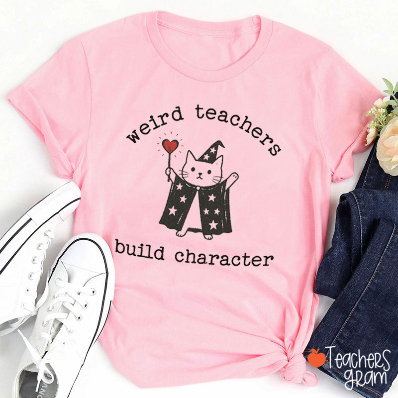 Weird Teachers Build Character Cute Cat Teacher T-Shirt