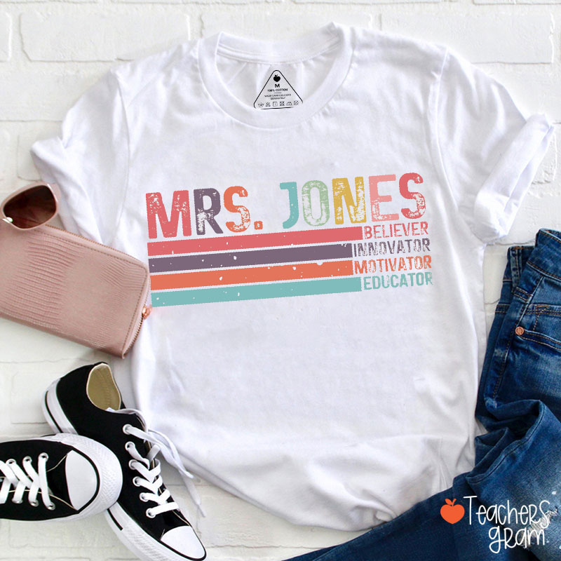 Personalized Name Believer Innovator Motivator Educator Teacher T-Shirt