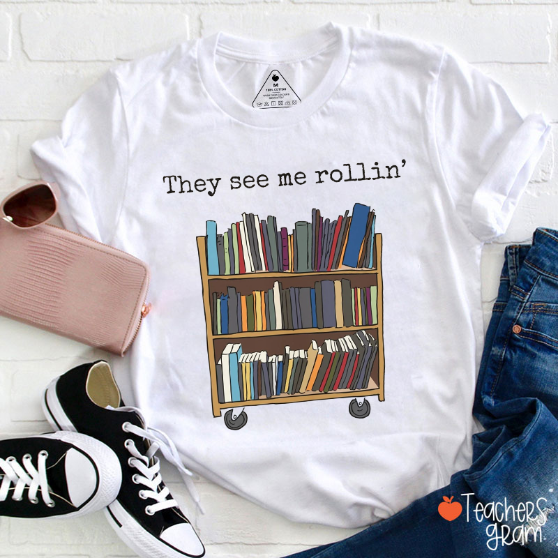 Rolling Bookcase Teacher T-Shirt